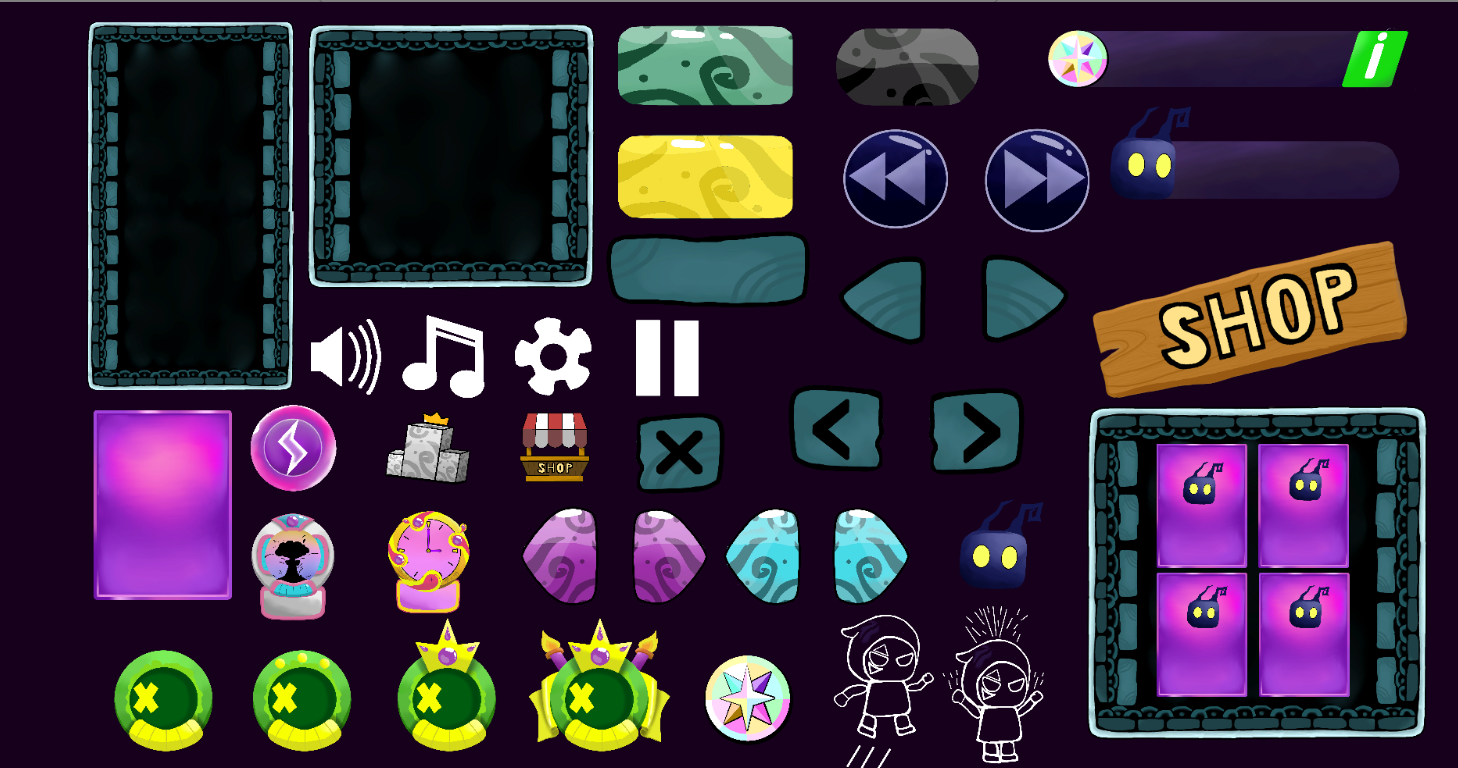 35 UI elements including counters, buttons, and popups and a lot more ...